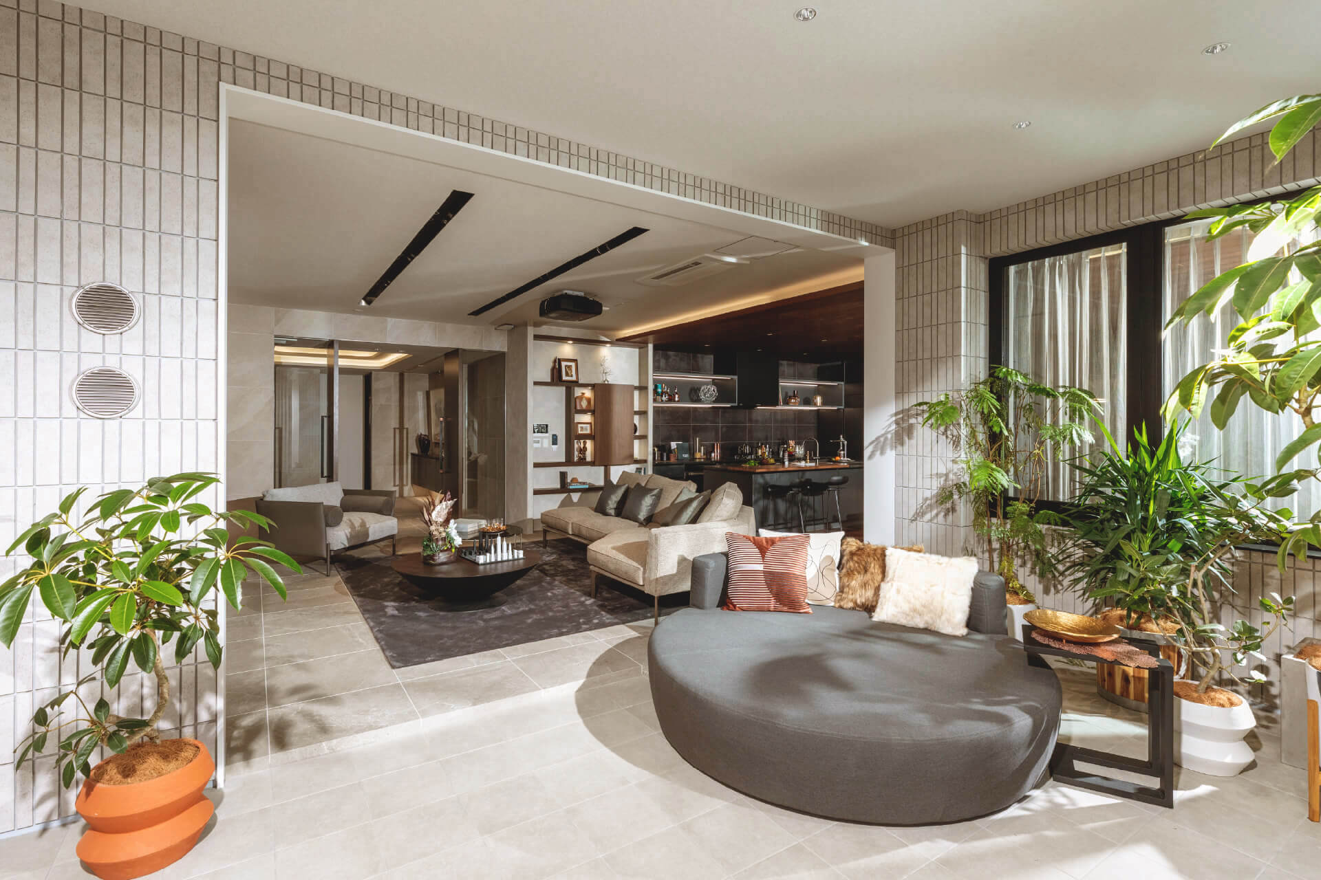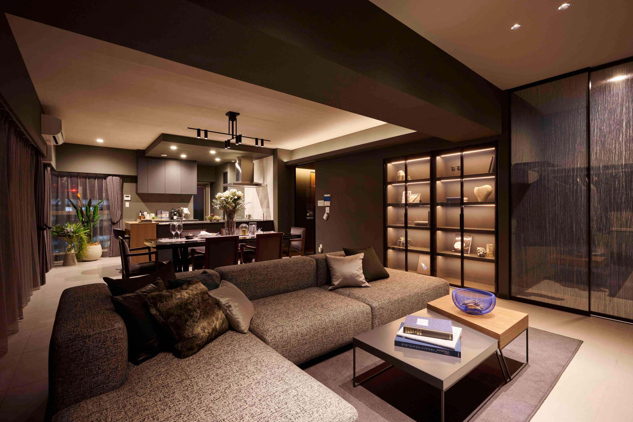 建物 室内空間 デザインにおいても妥協なく、緻密な設計・重厚な造形・素材等全てに拘りを尽くし風格を放つ邸宅を実現。